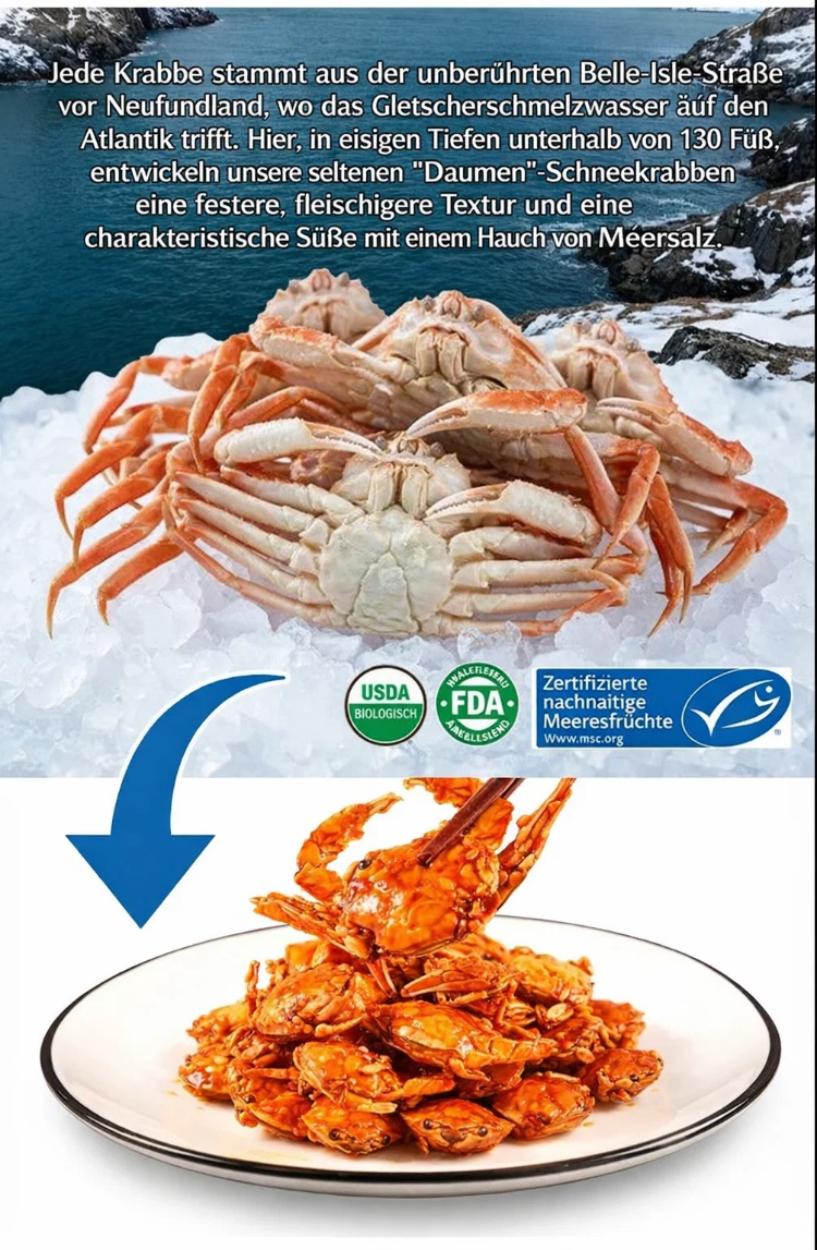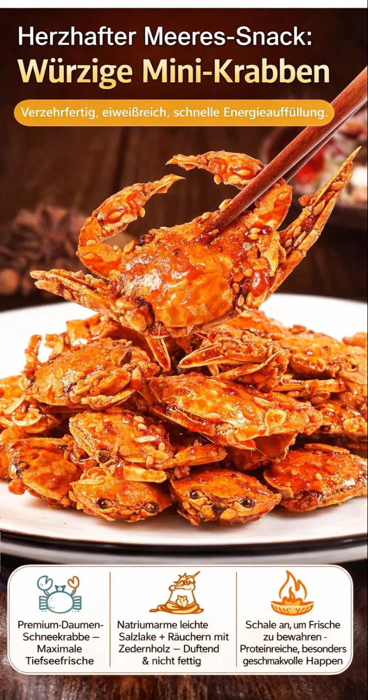 Frisch gefangene Krabben aus der Winterfischerei, direkt aus dem Meer! Um das unvergleichliche, köstliche Meeresaroma zu bewahren, versiegeln wir sie sofort nach dem Fang. Diese verzehrfertigen Mini-Krabben sind definitiv die frischesten und leckersten Meeresfrüchte, die Sie je probiert haben! 🦀